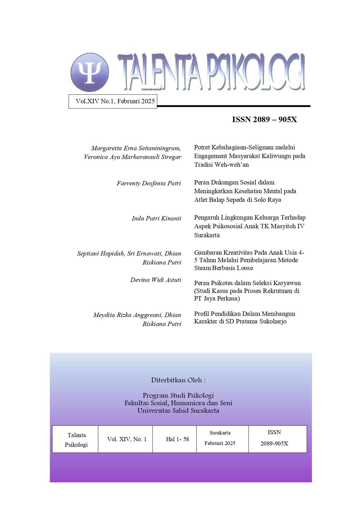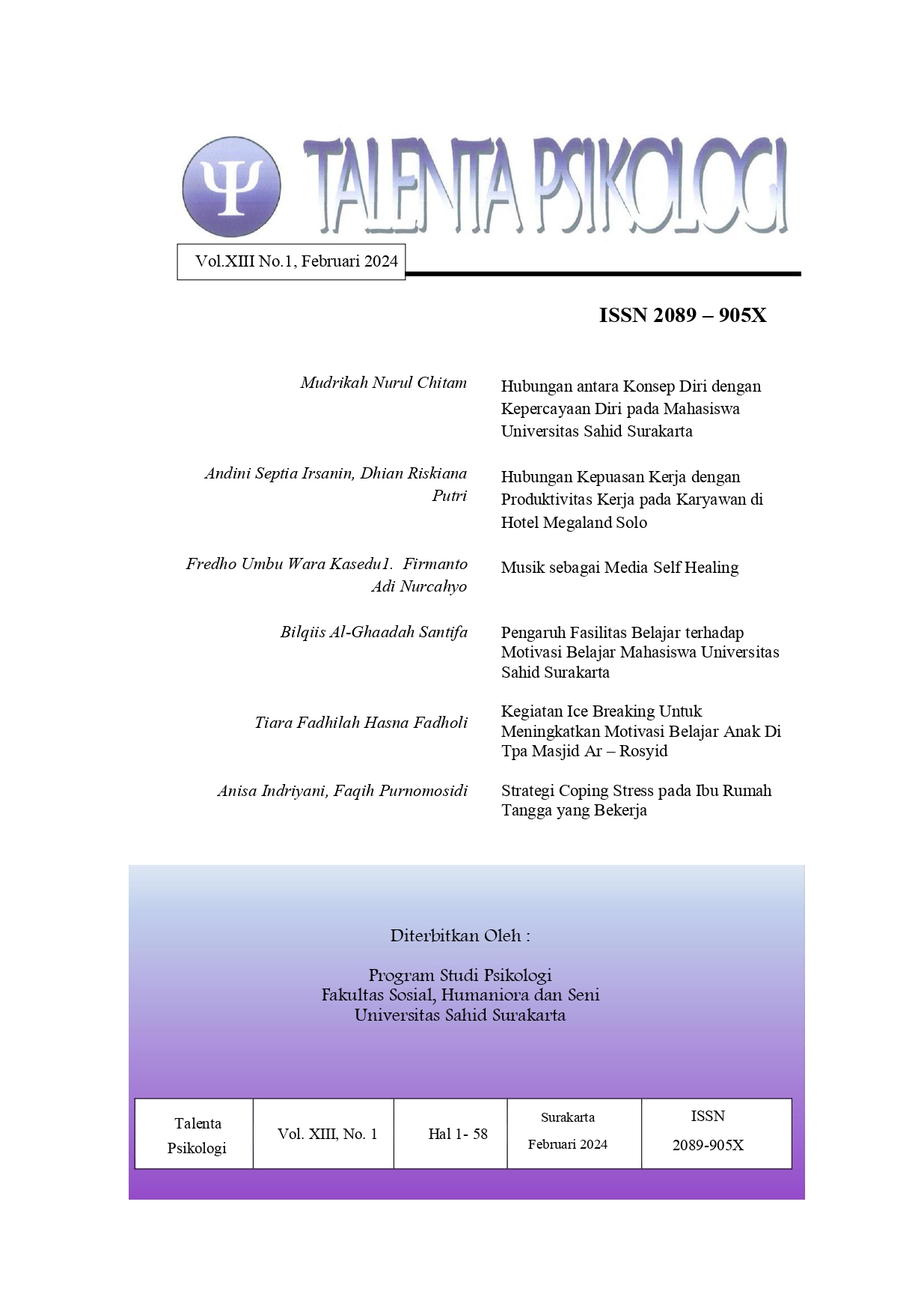 Diterbitkan Oleh Program Studi Psikologi Universitas Sahid Surakarta.